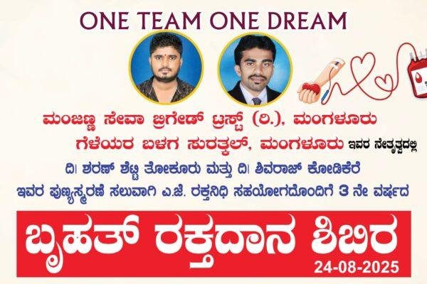 1 September 2025ಸುರತ್ಕಲ್: ಮಂಜಣ್ಣ ಸೇವಾ ಬ್ರಿಗೇಡ್ (ರಿ) ಟ್ರಸ್ಟ್ ಮಂಗಳೂರು ಹಾಗೂ ಗೆಳೆಯರ ಬಳಗ ಸುರತ್ಕಲ್ ರವರ ಆಶ್ರಯದಲ್ಲಿ ನಡೆದ ರಕ್ತದಾನ ಶಿಬಿರ ದಿ.ಶರಣ್ ಶೆಟ್ಟಿ ಹಾಗೂ ದಿ.ಶಿವರಾಜ್ ಕೋಡಿಕೆರೆ ಇವರ ಸ್ಮರಣಾರ್ಥ...