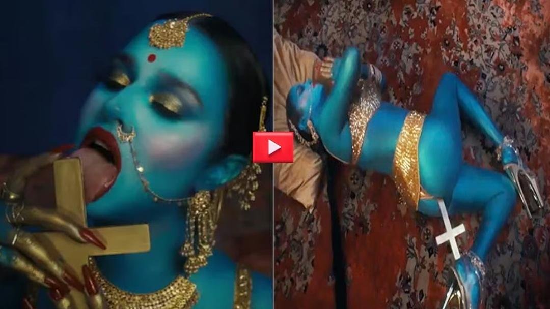 ವೀಡಿಯೊದಲ್ಲಿ, ಅವರು ನೀಲಿ ದೇಹದ ಬಣ್ಣ, ಚಿನ್ನದ ಆಭರಣಗಳು ಮತ್ತು ಕೆಂಪು ಬಿಂದಿಯೊಂದಿಗೆ ಹಿಂದೂ ದೇವತೆಯಂತೆ ಕಾಣಿಸುತ್ತಿದ್ದು, ಕ್ರಿಶ್ಚಿಯನ್ ಶಿಲುಬೆಯನ್ನು ಬಳಸಿರುವುದಕ್ಕೆ ನೆಟ್ಟಿಗರು ತೀವ್ರ ಆಕ್ರೋಶ ವ್ಯಕ್ತಪಡಿಸಿದ್ದಾರೆ.